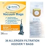 Crucial Vacuum Brand 36 Individual Allergen Filtration Vacuum Bags Fits Hoover Upright Type Y Vacuum Bags. A must for allergy sufferers with 99.7% filtration. Designed and Engineered in the USA by Crucial Vacuum. These vacuum bags are much more efficient than the standard paper bags. They are designed to keep 99.7% of all dust in the vacuum bag. These are comparable with Hoover's Allergen Style bag, part number 4010100Y.These bags fit the following Hoover model numbers; U5140-900; U5142-900; U5144-900; U5145-900; U5148-900; U5154-900; U5301-9RM;; U5330-900 U5330-900; U5393-900; U5394-900; U5395-900; U5395-940; U5395-960; U5395-970; U5396-900; U5396-960; U5397-900; U5398-900; U5398-990; U5399-900; U5402-900; U5403-900l; U5409-900 U5415-900; U5416-900; U5420-900; U5423-900; U5432-900; U5433-900; U5434-900; U5435-900; U5436-950; U5437-960; U5438-900; U5439-900; U5443-900; U5444-900; U5445-900;U5446-900; U5447-900; U5449-940; U5450-900; U5451-900; U5452-900; U5453-900; U5454-900; U5456-900; U5457-900; U5460-900 U5461-900; U5462-900; U5463-960; U5464-900; U5465-900; U5465-960; U5465-970; U5465-990; U5468-900;; U5469-900; U5469-910; U5470-900; U5475-900; U5475-960; U5477-900; U5720-900; U5720-960; U5720-990; U5721-900; U5722-900; U5740-900; U5750-900; U5750-980; U5751-900; U5752-900; U5753-960; U5755-900; U5757-900; U5758-900; U5759-900; U5760-900; U5761-900; U5762-900; U5780-900; U6401-9RM; U6423-900; U6425-900; U6425-920; U6429-900; U6429-900; U6430-900; U6430-900; U6431-900; U6432-900; U6432-900; U6433-900; U6433-900; U6434-900; U6435-900; U6435-900; U6436-900; U6436-900; U6437-900; U6437-900; U6439-900; U6441-900; U6441-940; U6445-900; U6445-920; U6446-900; U6446-930; U6449-900; U6450-900; U6451-900; U6451-960; U6453-900; U6454-900; U6455-900; U6455-960; U6458-900; U6459-900; U6459-900; U6460-900; U6470-900; U6470-910; U6471-900; U6473-900; U6474-900; U6607-900; U6616-900; U6617-900; U6618-900; U6626-900; U6632-900;